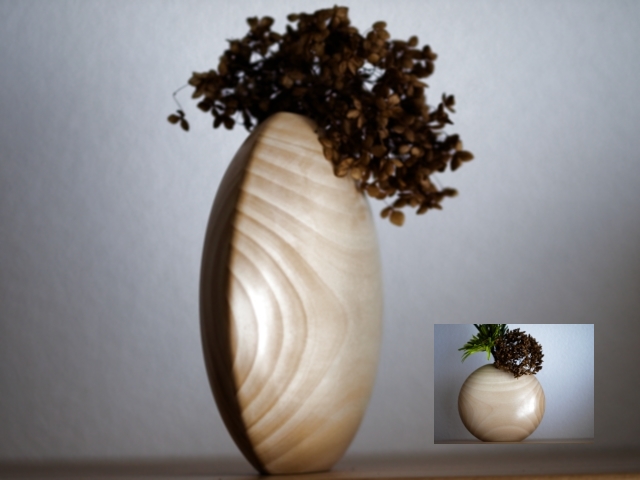 Diskusvase aus Lindenholz.....Durchmesser 220mm....Wandungsstärke 4mm....Oberfläche gewachst / Unikat