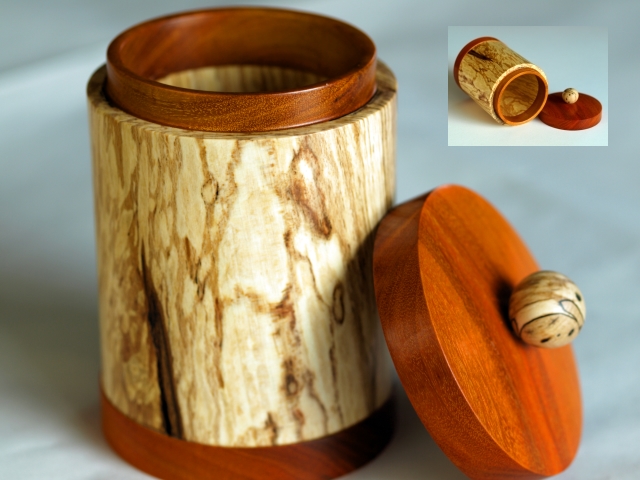 Dose aus gestockter Buche und Red Heart...Höhe 115mm/Durchmesser 70mm...Oberfläche gewachst.