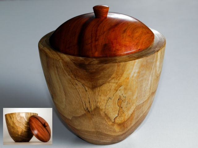 Dose aus Walnuß- + Zwetschgenholz---Höhe 150mm Durchmesser 140mm---Oberfläche mit Tungöl + Orangenöl behandelt.