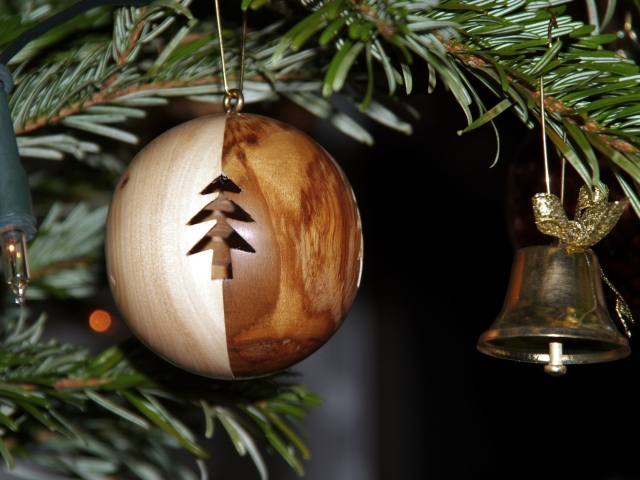 Weihnachtskugel aus Zwetschgenholz ....Durchmesser 58mm.....Oberfläche gewachst / Unikat